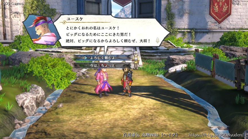 【百英雄伝】キャラクター「ユースケ」のプロフィール、加入タイミング、習得コマンドなどをまとめています。