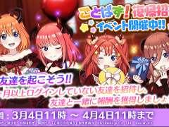 アニメ「五等分の花嫁」初のゲームアプリ『五等分の花嫁 五つ子ちゃんはパズルを五等分できない。』【友達招待イベント】冬ごもりの友達を起こそう!実施中