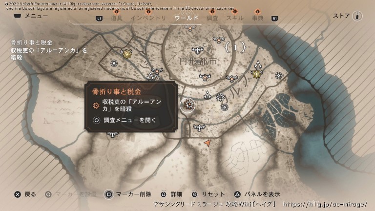 【アサシン クリード ミラージュ】「骨折り事と税金」の攻略チャートです。 ゲームの進め方やクリア報酬をまとめています。