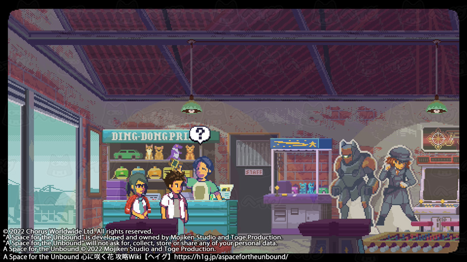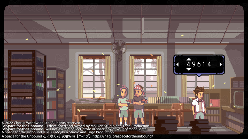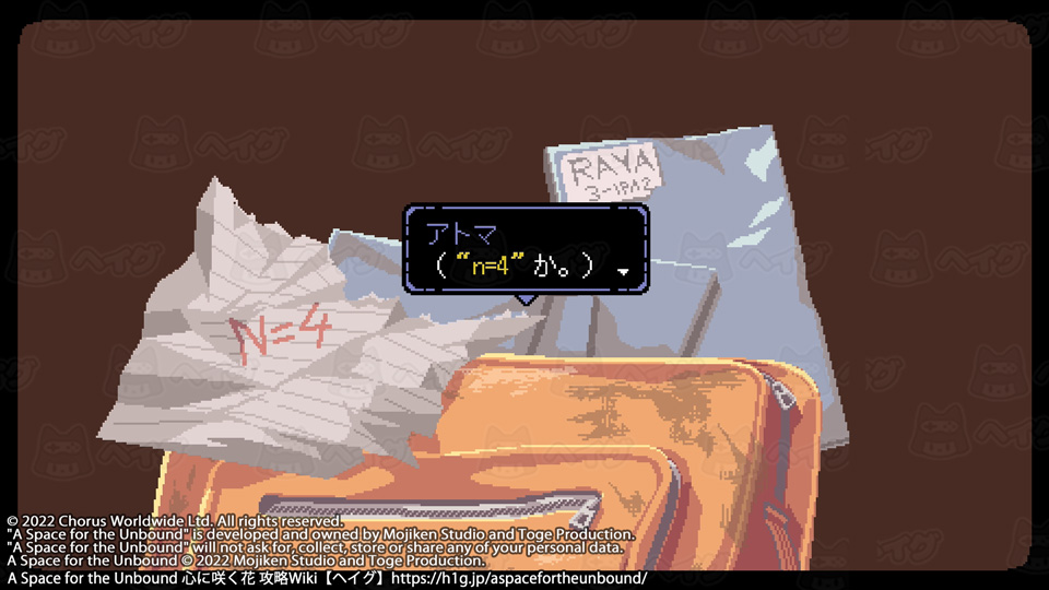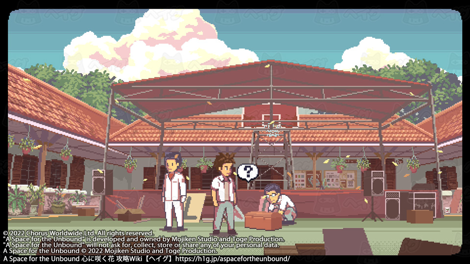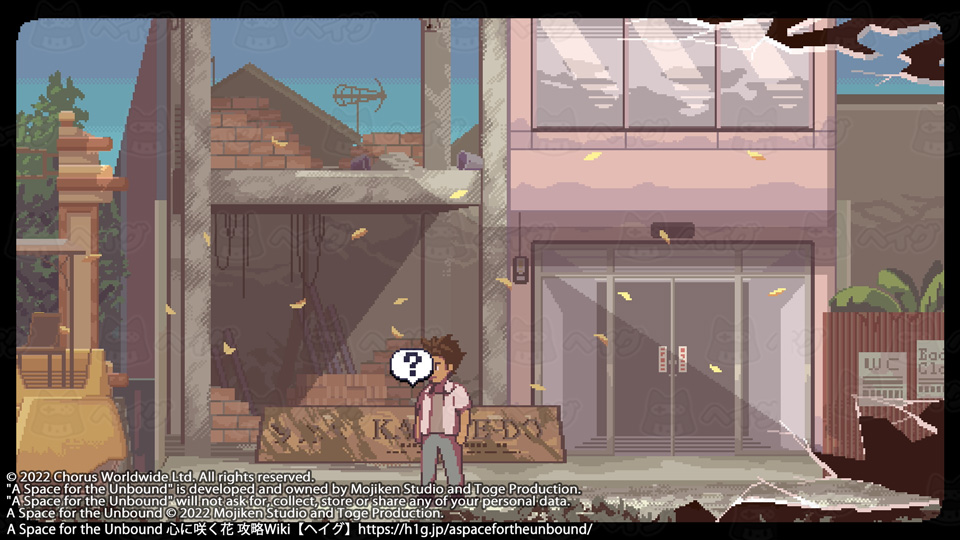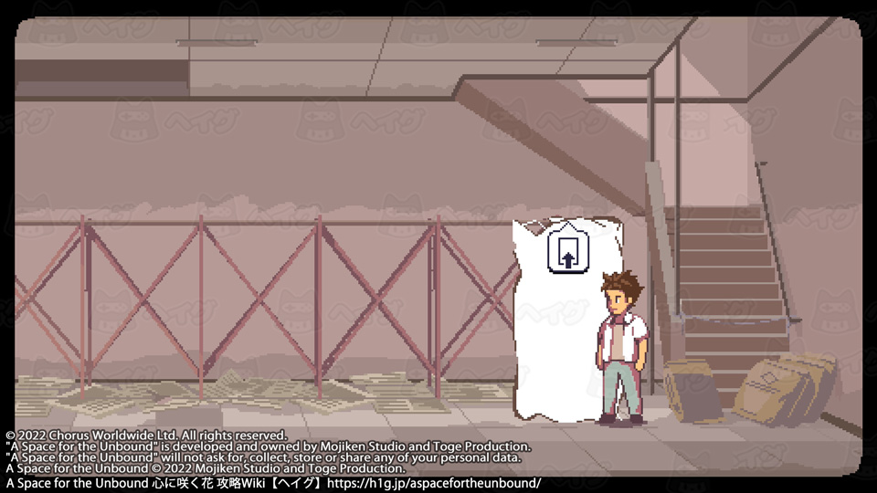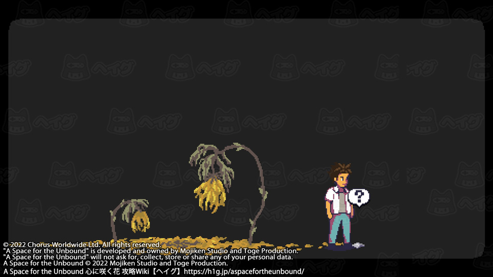 取り逃しがなければ、広場前にある王冠で20個全て集まります。 【A Space for the Unbound 心に咲く花】ビンの王冠コレクションの入手場所 - A Space for the Unbound 心に咲く花 攻略Wiki : ヘイグ コレクション 『A Space for the Unbound 心に咲く花』ビンの王冠コレクションの入手場所についてまとめています。 https://h1g.jp/aspacefortheunbound/?コレクション