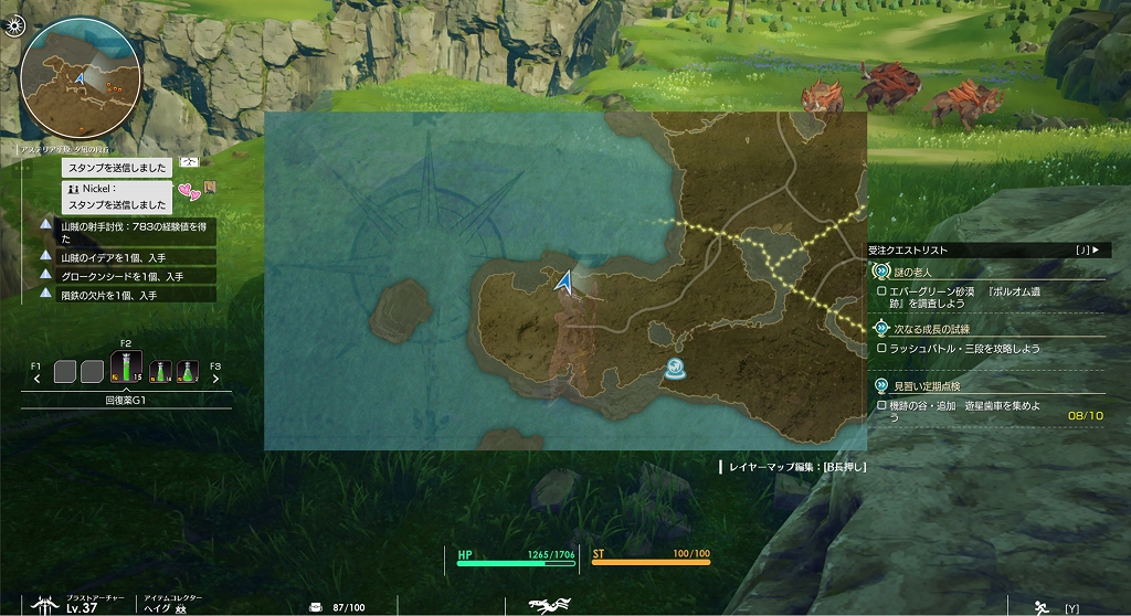 【ブルプロ】「夕凪の段丘」のマップ、宝箱、採取、出現エネミー等をまとめています。