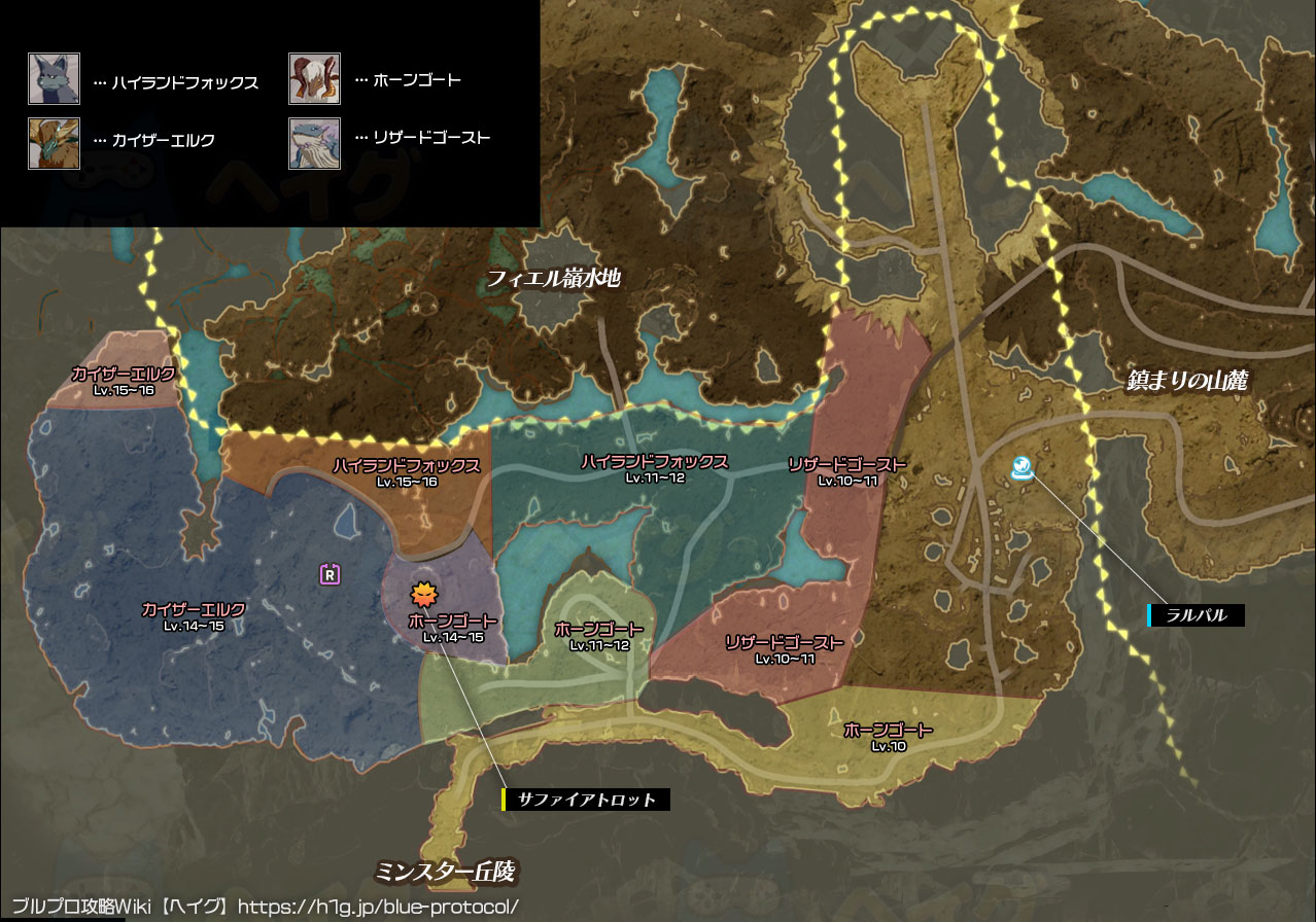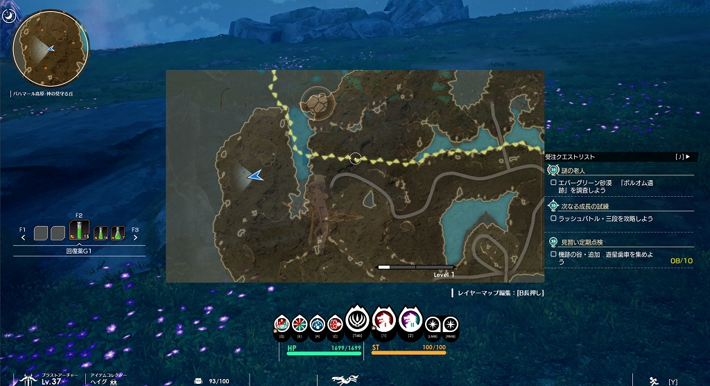 【ブルプロ】「神の見守る丘」のマップ、宝箱、転送ポータル、採取、出現エネミー等をまとめています。