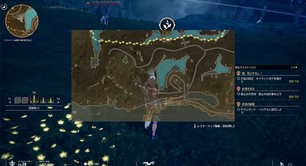 【ブルプロ】「神の見守る丘」のマップ、宝箱、転送ポータル、採取、出現エネミー等をまとめています。
