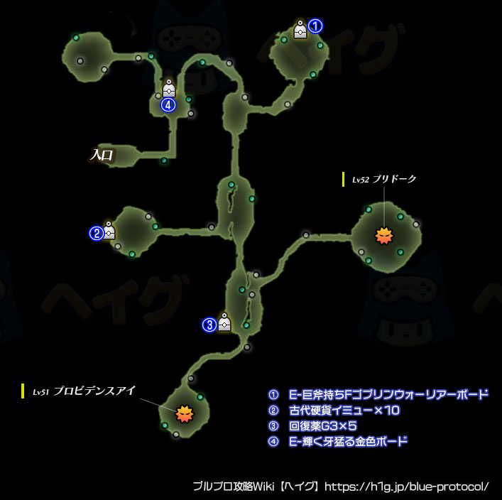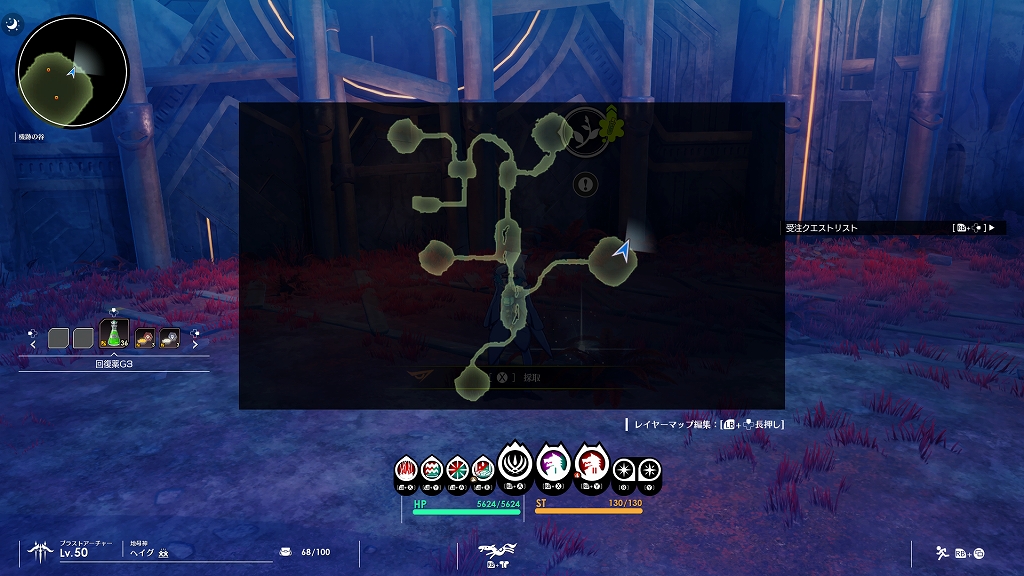 【ブルプロ】「機跡の谷・自由探索」のマップ、宝箱、採取、出現エネミー等をまとめています。