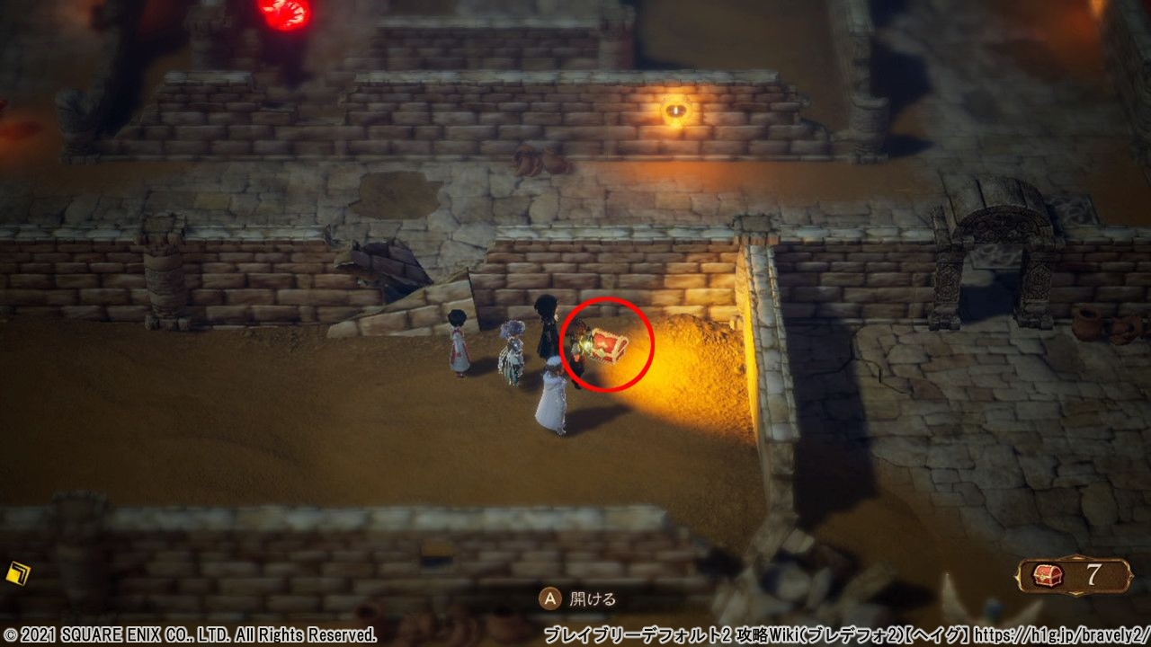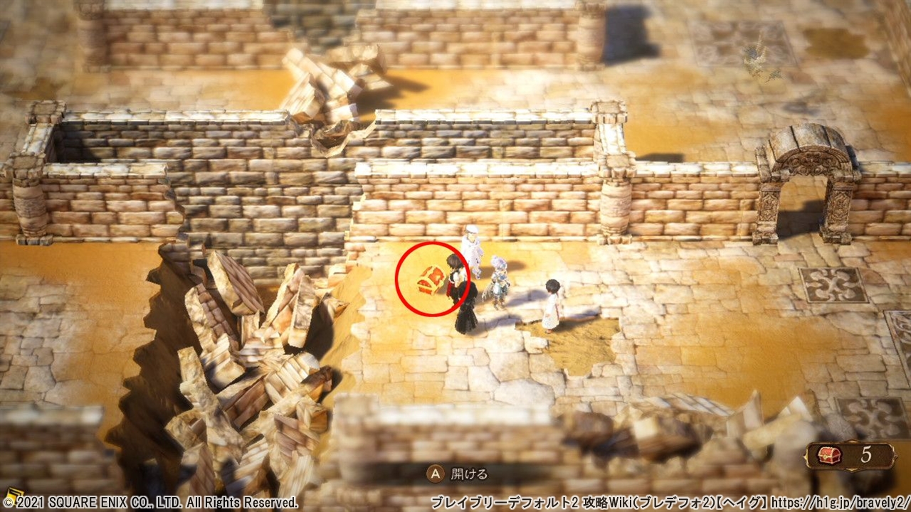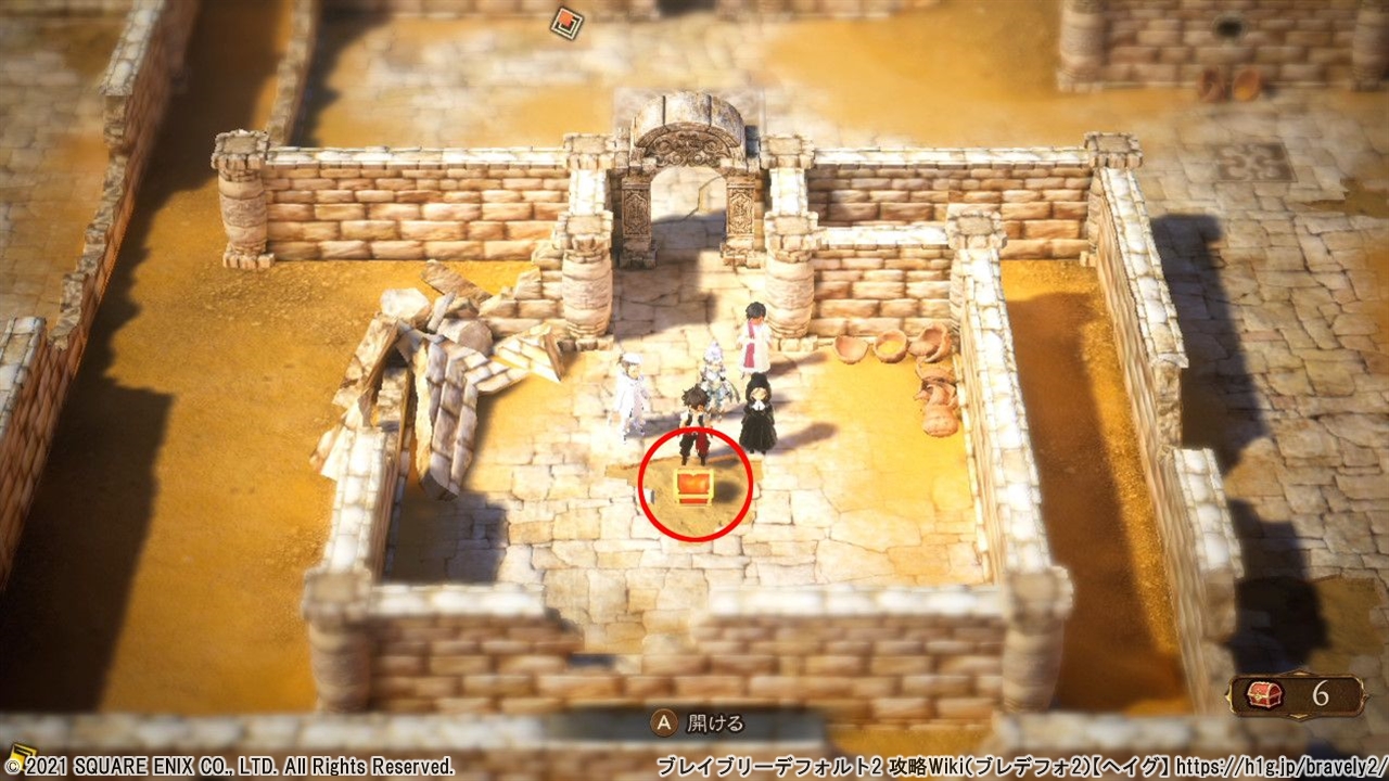 【ブレイブリーデフォルト2】熱砂の遺跡の宝箱の位置についてまとめています