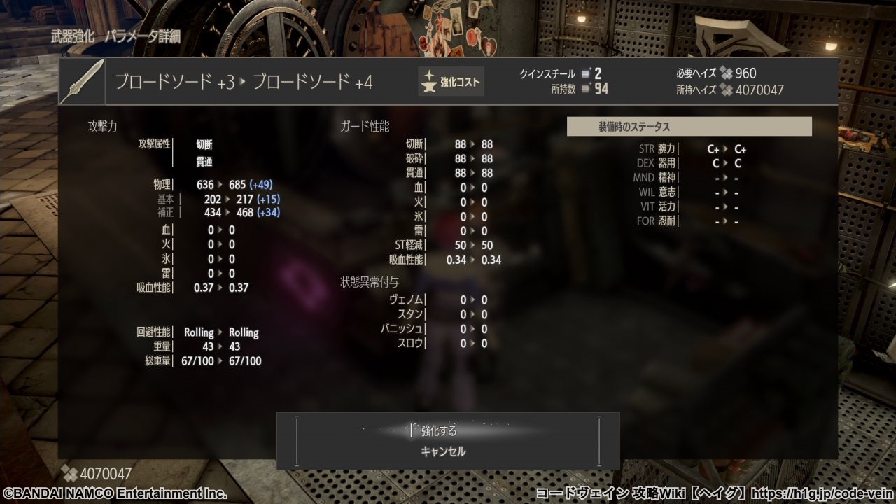 このページは『コードヴェイン』の「武器や吸血牙装の強化・転成について」記載しています。