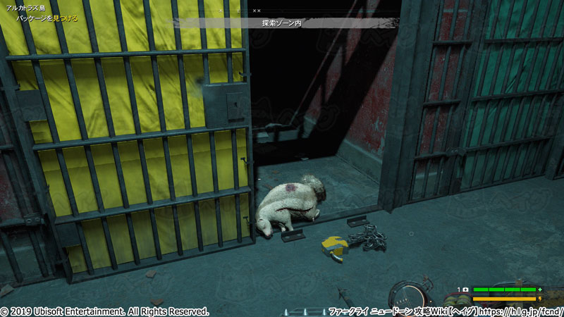 探検:アルカトラズ島のB棟3Fの錠のかかった黄色い牢の中にいる。