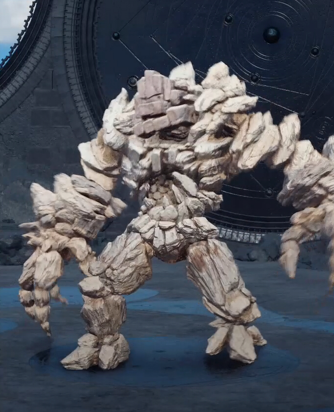 乾燥地帯で採れる希少鉱石で出来た自動人形。 かつてセトラの民によって生み出された。 防衛能力を強化され、地面や石に爆発効果を付与することができる。