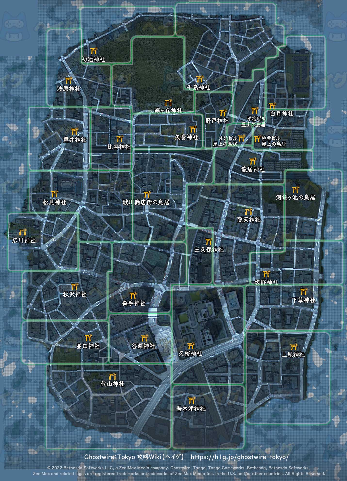 『Ghostwire:Tokyo』の『全神社とエリアのマップ』の攻略情報です。