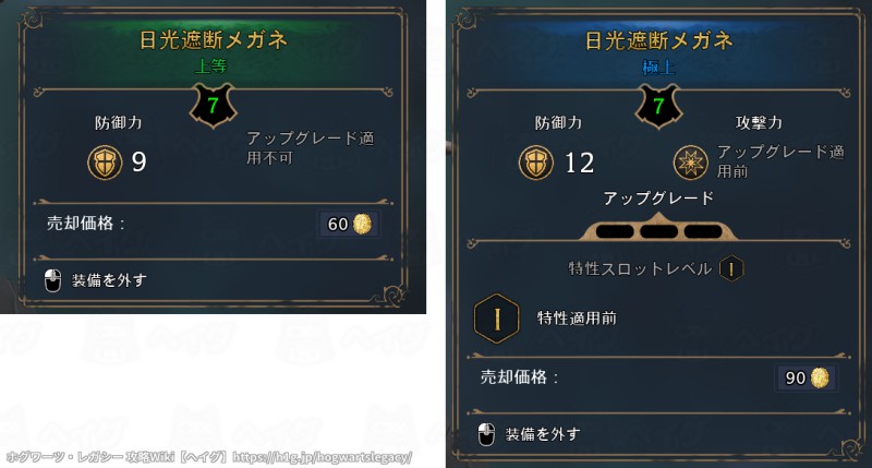 同じアイテムでも、レアリティが違えば性能も異なります。