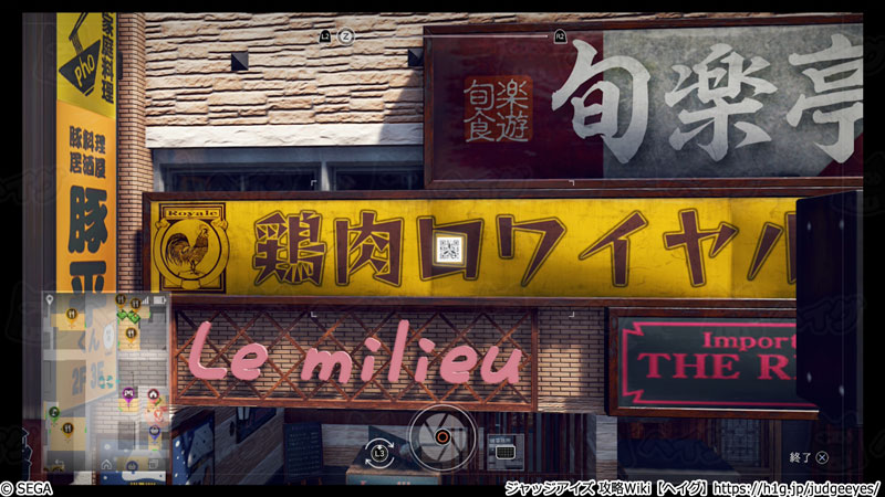 ここではジャッジアイズの『2Dコード(レシピ)』の撮影場所について記載していきます。
