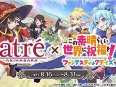 スマホゲーム『この素晴らしい世界に祝福を!ファンタスティックデイズ』が、8月16日よりアトレ秋葉原店とコラボレーションを開催!1.5周年を記念したオリジナルグッズを販売!