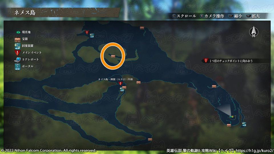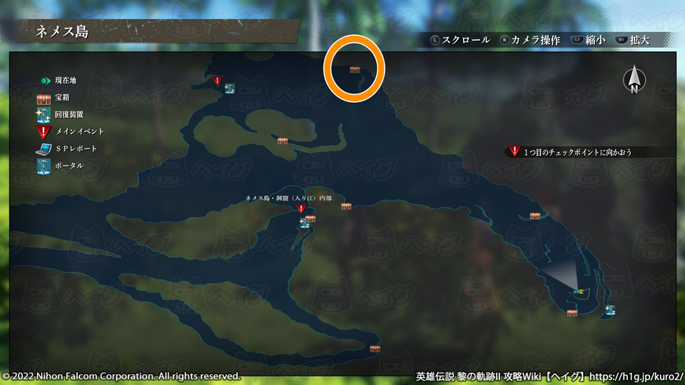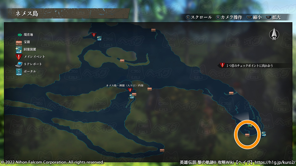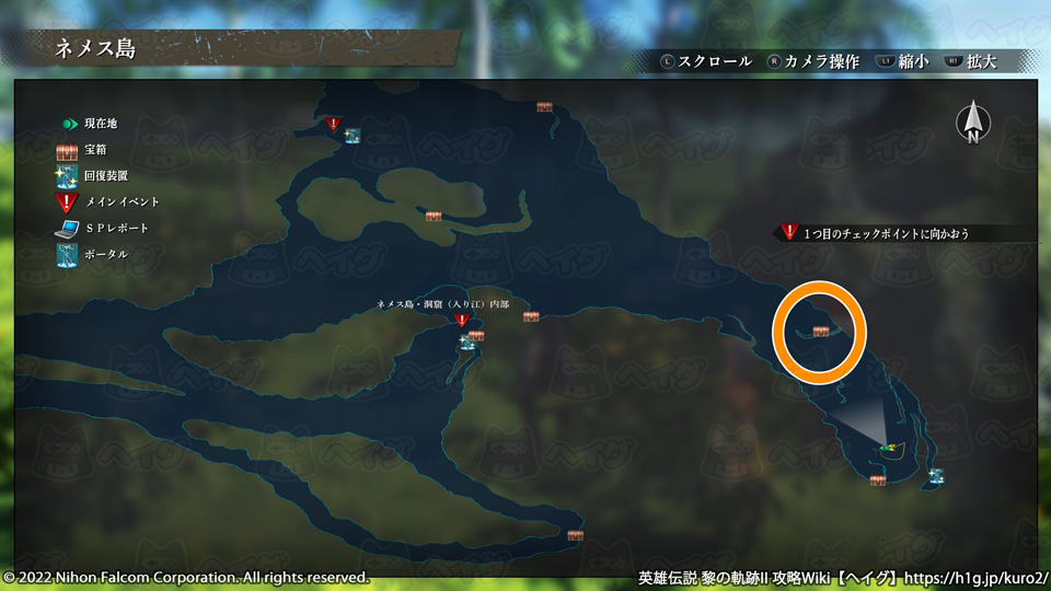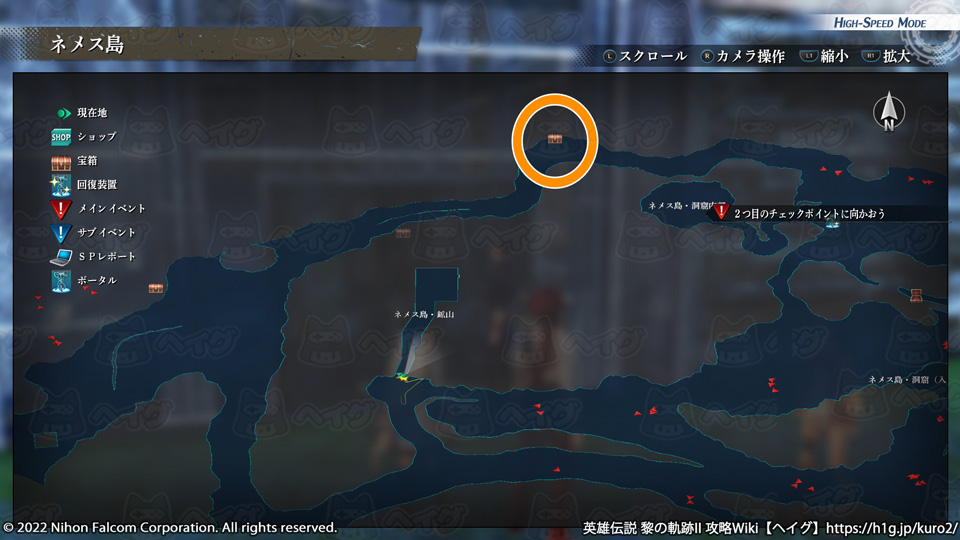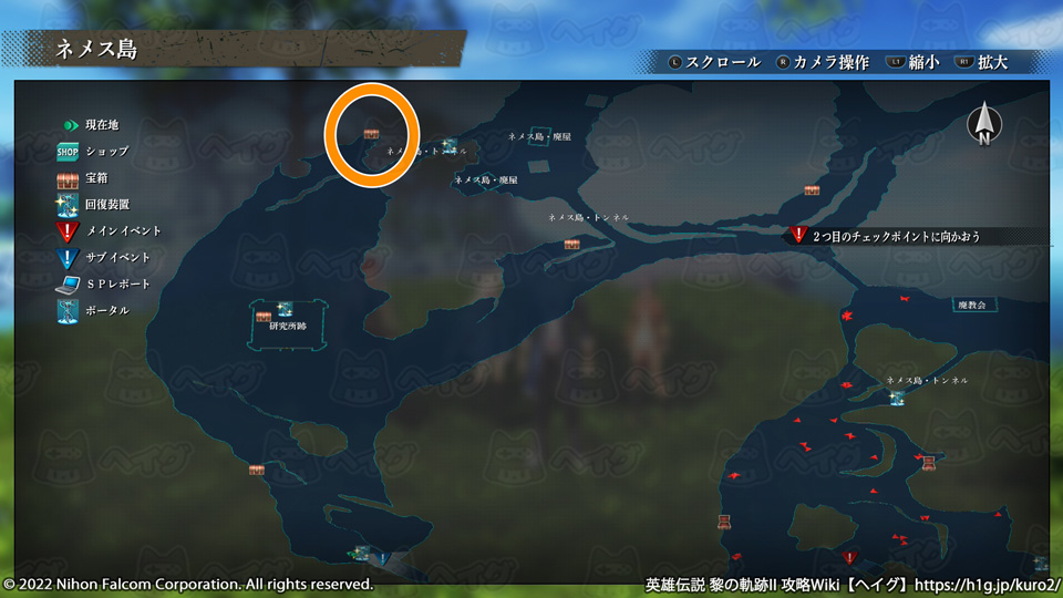 『英雄伝説 黎の軌跡II(くろのきせき2)』のマップ「ネメス島」で入手できる宝箱やショップ、出現する敵をまとめています。