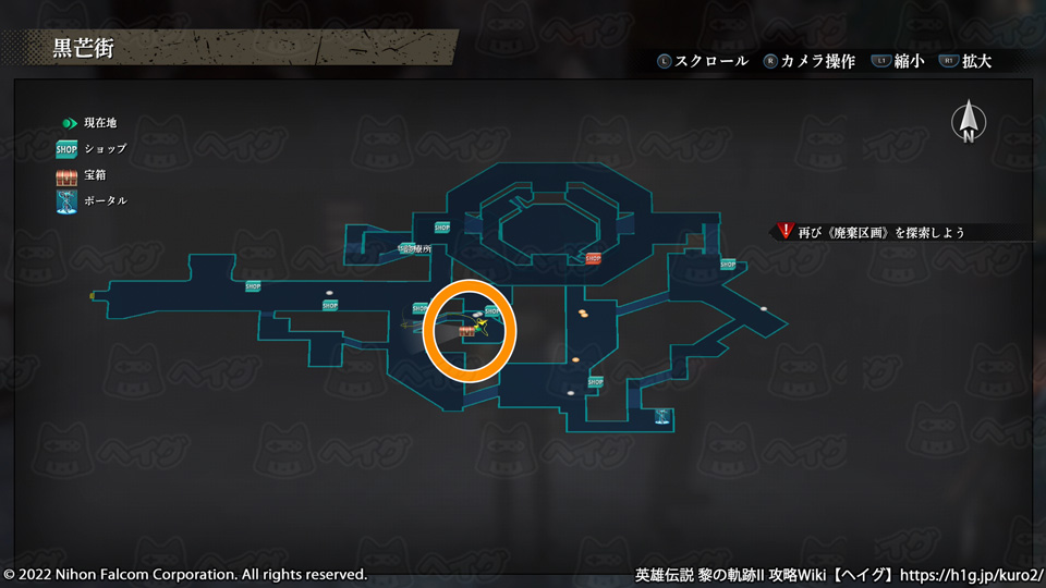 『英雄伝説 黎の軌跡II(くろのきせき2)』のマップ「黒芒街」で入手できる宝箱やショップ、出現する敵をまとめています。