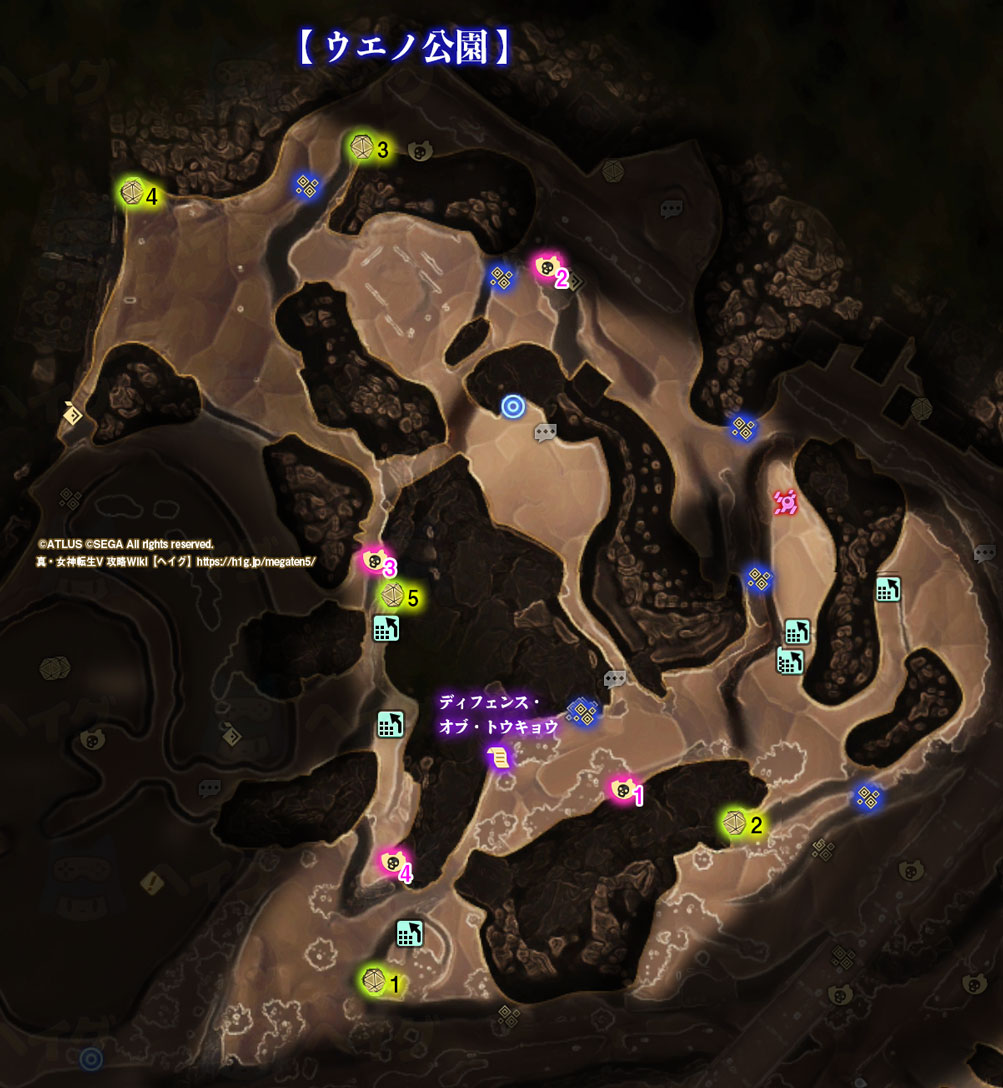『真・女神転生V』「ダアト:ウエノ公園」のマップ情報。宝箱・ミマンの場所、出現する敵の情報などをまとめています。