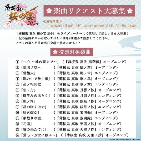 【薄桜鬼 真改 桜の宴 2024】ライブコーナー楽曲リクエスト大募集!