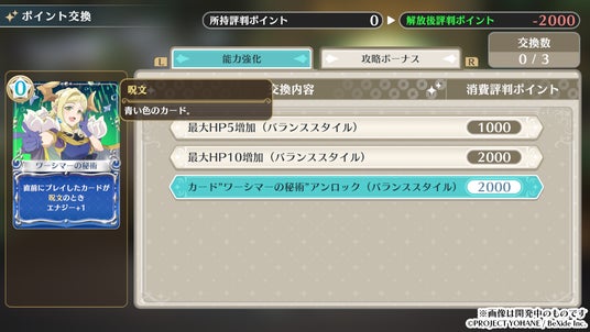 ヨハネの家である占いの館では、衣装の変更や新しいカードのアンロック、能力強化といった一部のカスタマイズも行えます。