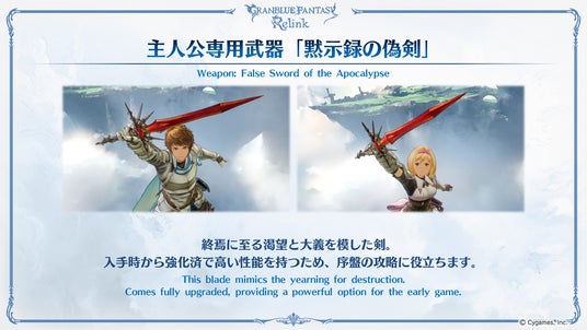 今回は、パッケージ版の「通常版」、ダウンロード版の「スタンダードエディション」を除いた6つのエディションに付属する「インゲームアイテムセット」に含まれる、主人公専用武器「黙示録の偽剣」についてご紹介。当武器は入手時から強化済みのため、そのまま装備するだけで序盤のバトルが楽になる心強い存在です!