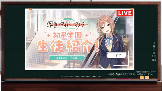 2024年3月13日(水)より、毎週水曜日19時(予定)にYouTube「アイドルマスターチャンネル」にて初星学園HR(ホームルーム)』と称した生配信を実施予定!