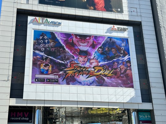 本日より、新宿と渋谷のモニターに『ストリートファイター:デュエル』の広告が登場いたします!大画面のモニターに映し出される動画をお楽しみください。
