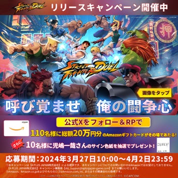 A PLUS JAPAN株式会社は、本日3月27日にスマートフォン向けアプリ『ストリートファイター:デュエル』の正式サービスを開始したことをお知らせいたします。
