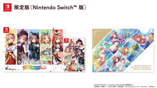 株式会社MAGES.(東京都港区 代表取締役社長:本荘健吾)は、Nintendo Switch(TM)/PlayStation(R)4ゲーム『五等分の花嫁 ごとぱずストーリー 2nd』の発売日が2024年9月26日に決定しましたことをお知らせいたします。また、本日より予約受付が開始となり、商品仕様の詳細や店舗特典情報なども公開いたしました。
