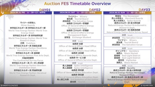 今回の「パブリックオークション」では、「オークションフェス」と題した生放送とともに、今までにないオークションを行います。初挑戦となる全く新しい販売方式で、キャラクターを音楽フェスのラインナップのように、職種ごとに時間を分けて販売します。