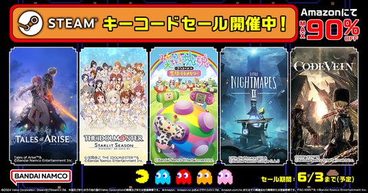 Amazonにて最大90%OFFのバンダイナムコエンターテインメントSteamキーコードセール開催中!