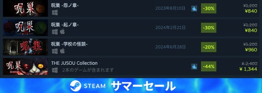 呪巣シリーズですでにSteamにてリリースとなっている 『起ノ章』『怨ノ章』 の2作品がSteam サマーセール2024に参加決定!