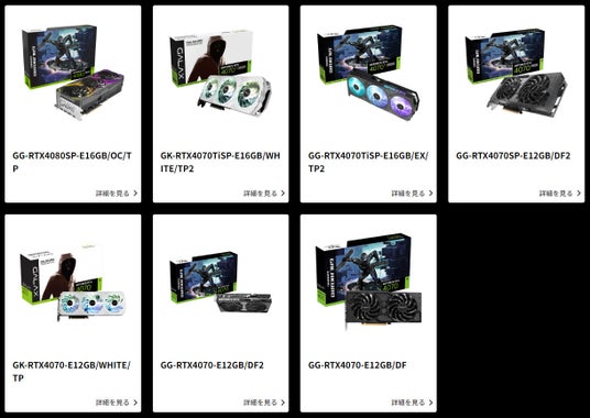 玄人志向、GALAKURO GAMINGブランドのGeForce RTX 4090、RTX 4080 Super、RTX 4080、RTX 4070 Ti Super、RTX 4070 Ti、RTX 4070 Super、RTX 4070 シリーズ 搭載グラフィックボード ※中古品は対象外です。