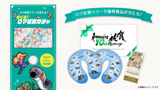 秋から佐賀県で始まるイベントに向けて「行くぞ!ロマ佐賀ガチャ」大抽選会を開催します。A賞はなんと実施予定のロマシング佐賀10周年ツアーにご招待!そのほかにも、「浪漫寝具佐賀 ネックピロー」など佐賀への冒険に使える装備もゲットできるのでこのチャンスをお見逃しなく。
