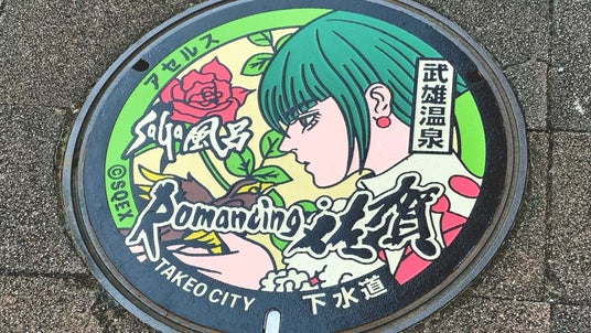 佐賀県と「サガ」シリーズのコラボによるデザインマンホール。2020年に初めて佐賀市に設置され、2023年までで県内合計30個が設置されています。今回は武雄市に設置されているアセルス(『サガ フロンティア』)のデザインマンホールと同じものを会場で展示いたします。このマンホールは、佐賀県内に工場を持つ鋳物メーカーの日之出水道機器株式会社佐賀工場(佐賀県みやき町)で製造されています。