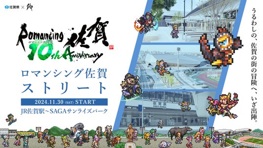 今夏、ファン待望・10年ぶりの東京イベント「ロマンシング佐賀TOKYO」を開催、秋には舞台を佐賀に移し、冒険の旅路を振り返る「ロマ佐賀企画展」や佐賀駅から北に向かうサンライズストリートがロマ佐賀の装飾で彩られる「ロマ佐賀ストリート」の展開など、これまで築き上げたロマ佐賀資産はもちろんのこと、新たな作品もお披露目されるなど、10周年の節目にふさわしい企画にアップデートして、皆様をお待ちしています。
