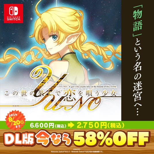 さらに、シナリオとシステムが巧みに融合した、並列世界を旅する伝説のADVゲームのフルリメイク作品『この世の果てで恋を唄う少女YU-NO』は58%OFFに。 今年の9月に25周年という節目を迎える「メモリーズオフ」シリーズからも3タイトルがセール対象となっており、バラエティに富んだ作品をお得にお楽しみいただけます。
