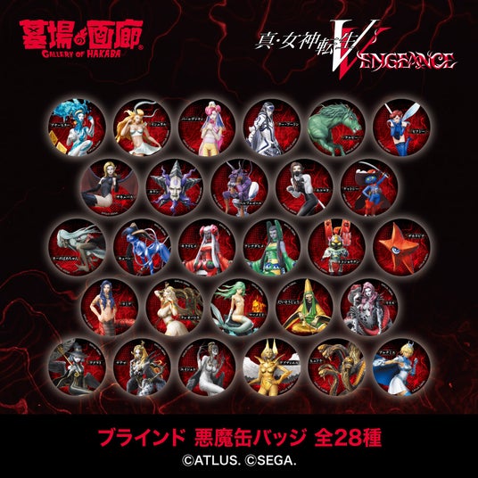『真・女神転生V Vengence』に登場する悪魔たちから、厳選28体の悪魔を缶バッジとしてリリース!シリーズ中でも人気の高いおなじみの悪魔から、当たって嬉しいセクシー美女系悪魔まで、全28種をブラインド方式で販売!缶バッジで自分好みのパーティを組もう!