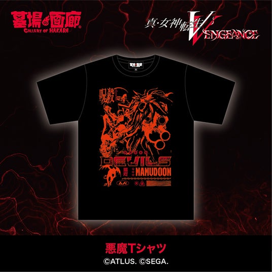 「真・女神転生V Vengeance」に登場する悪魔たちが所狭しとデザインされたTシャツが登場!その禍々しさはまさに即死級のカッコよさ!マハムドオンの文字に戦慄しろ!
