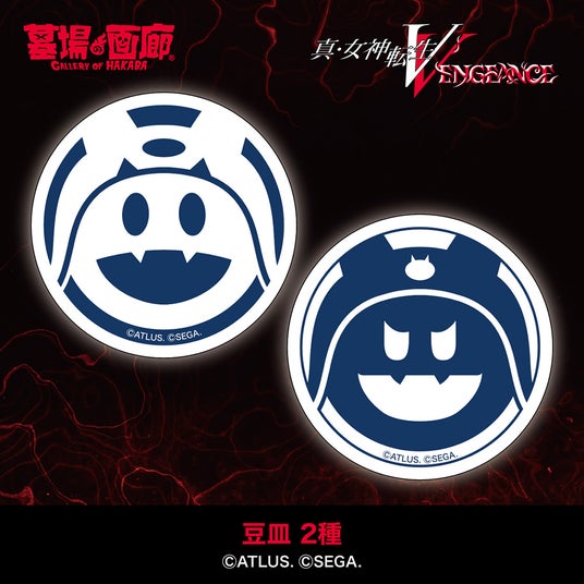 ジャックフロストとジャアクフロストが描かれた2枚の豆皿がセットで登場だホ!気の利いたかわいい食器としてはもちろん、小物置きとしても使えるサイズ感だから、実用性抜群だホ!