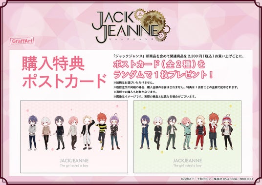 今回発売した『ジャックジャンヌ』の新作グッズを含む関連商品を2,200円(税込)お買い上げごとに、ポストカード(全2種)をランダムで1枚プレゼント。