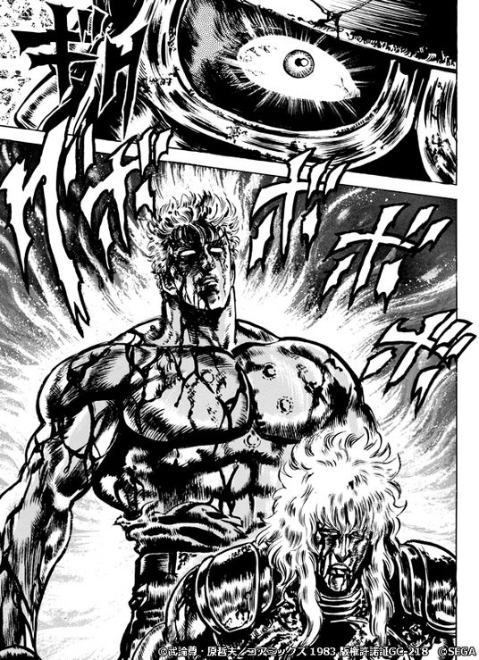 著作権表記:(C)武論尊・原哲夫/コアミックス 1983 版権許諾証GC-218 (C)SEGA