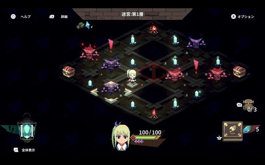プレイヤーは限られたターン数でダンジョンを探索し、敵との戦闘やアイテムの獲得など、行き先を決定します。
