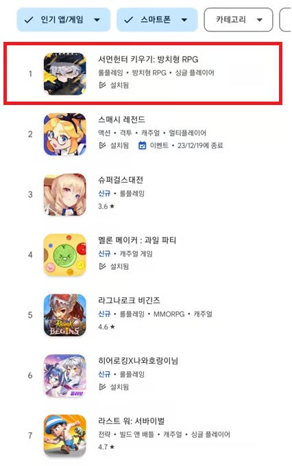 「ハンターズ・フレア」はグローバルで人気を集めている放置RPGジャンルであり、2023年11月に韓国で配信され、12月にはGoogle Playストアの無料人気ランキングで1位を記録した。