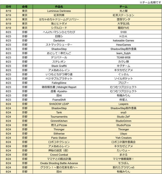 クリエイターの生涯活躍を支援する株式会社ゲームクリエイターズギルド(本社:東京都豊島区、代表:宮田大介、以下ゲームクリエイターズギルド)は、「学生インディーゲーム展」に出展者一覧を公開しました。東京・京都合わせて95チームが展示を行います。また、本イベントは一般入場の申し込みも受付中で、入場料無料でどなたでもご来場いただけます。