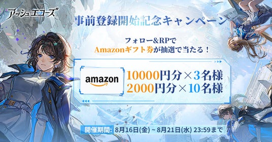 現在、事前登録受付開始を記念して、XにてAmazonギフト券10000円分が3名様に、2000円分が10名さまに抽選で当たるキャンペーンが実施中です!是非、以下の公式Xよりご参加ください。