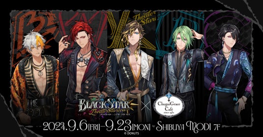 株式会社DONUTS(東京都渋谷区、代表取締役:西村啓成)が運営するスマートフォン向けアプリゲーム『ブラックスター -Theater Starless-』は、2024年9月10日(火)にアプリ配信開始から5周年を迎えることを記念して、9月6日(金)より展示会イベント「『ブラックスター -Theater Starless-』5TH ANNIVERSARY EXHIBITION」およびコラボレーションカフェ「『ブラックスター -Theater Starless-』 × Chugai Grace Cafe」を渋谷モディにて、9月28日(土)よりポップアップストアをなんばマルイにて期間限定で開催することをお知らせいたします。
