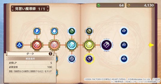 ダンジョンを探索してお金を集めたり、授業や課題をこなしたりすることで、スキルツリーの解放条件を満たしましょう。