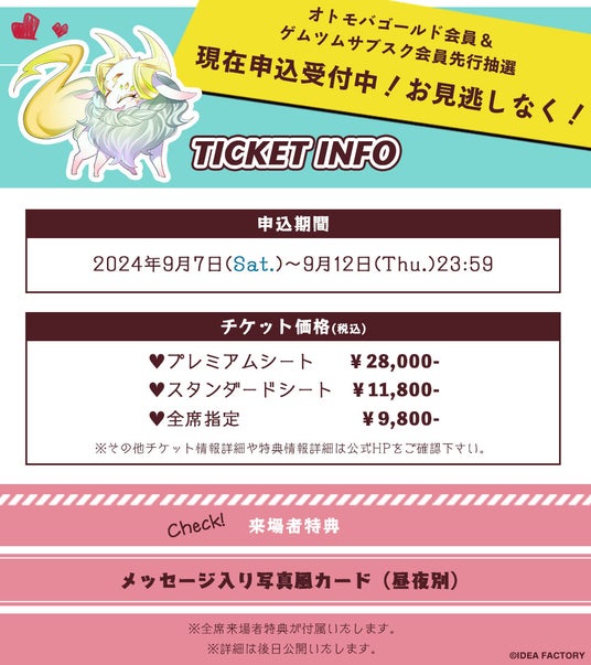 ※オトメイトモバイルゴールド会員、「八代&浦・夏目のゲームツーリズム♪」サブスク会員向けに公開しているチケットぴあの運営するチケット申し込み専用ページよりお申込みください。