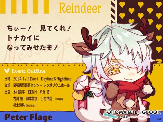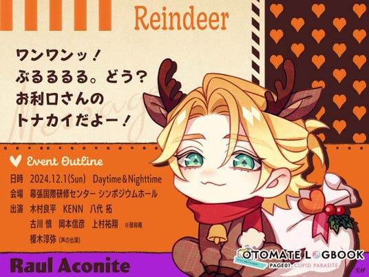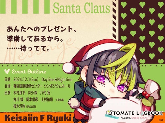アイディアファクトリー株式会社(代表取締役社長:佐藤 嘉晃/所在地:東京都豊島区)の女性向けゲームブランド「オトメイト」は、2024年12月1日(日)に開催する「キューピット・パラサイト」単独イベントの描きおろしちびキャライラストを公開いたしました。