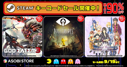 株式会社バンダイナムコエンターテインメントが当社のECサイト『ASOBI STORE』にて最大90%OFF のSTEAMキーコードセールを開催したことをお知らせいたします。
