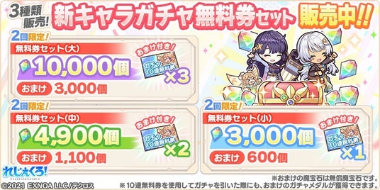 ・新キャラガチャ無料券セット(大)/(中)/(小)
