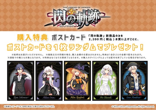 『閃の軌跡』新商品のみを1会計2,200円(税込)お買い上げごとに、購入特典としてポストカード(全5種)をランダムで1枚プレゼント。新作グッズ同様、ポストカードも今しか手に入らない限定品なので、ぜひゲットしてください!